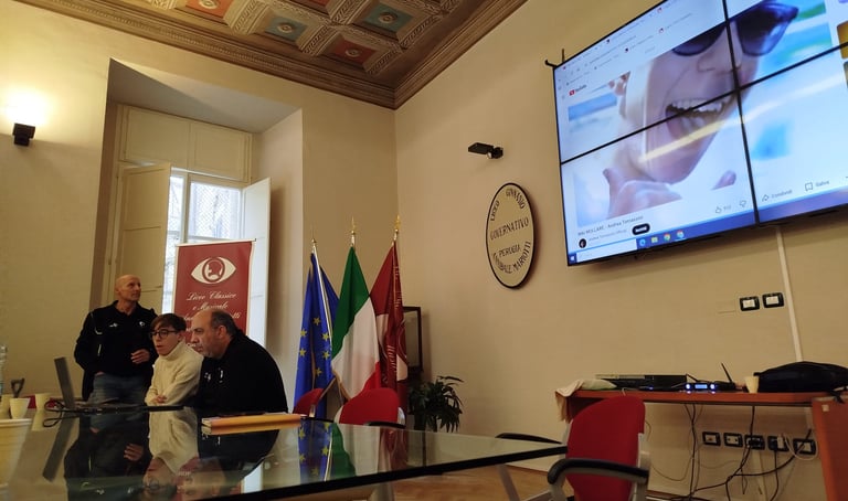 All’incontro ha preso parte anche il nostro Presidente Andrea Tomassini, che ha sottolineato l’importanza della rete solidale e dell’impegno collettivo per sostenere le persone più fragili. Inoltre, il Presidente di Margot, Massimo Pici, ha voluto leggere una significativa e commovente riflessione di Andrea su questo tema, riportata anche dal Corriere dell’Umbria, e ha fatto ascoltare ai ragazzi le sue canzoni come testimonianza della sua esperienza di vita.