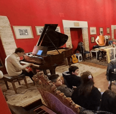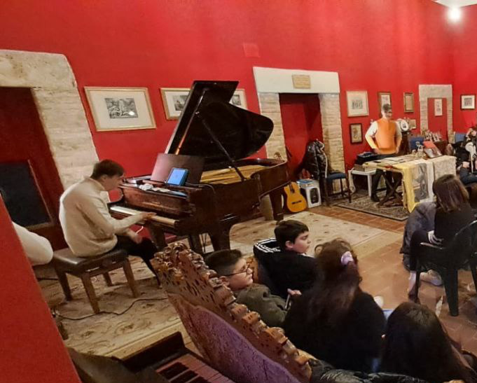 Andrea è stato invitato proprio al Castello per condividere la sua storia di vita e la sua musica con i ragazzi che, con le loro numerose domande, si sono mostrati molto interessati ad approfondire la sua conoscenza.